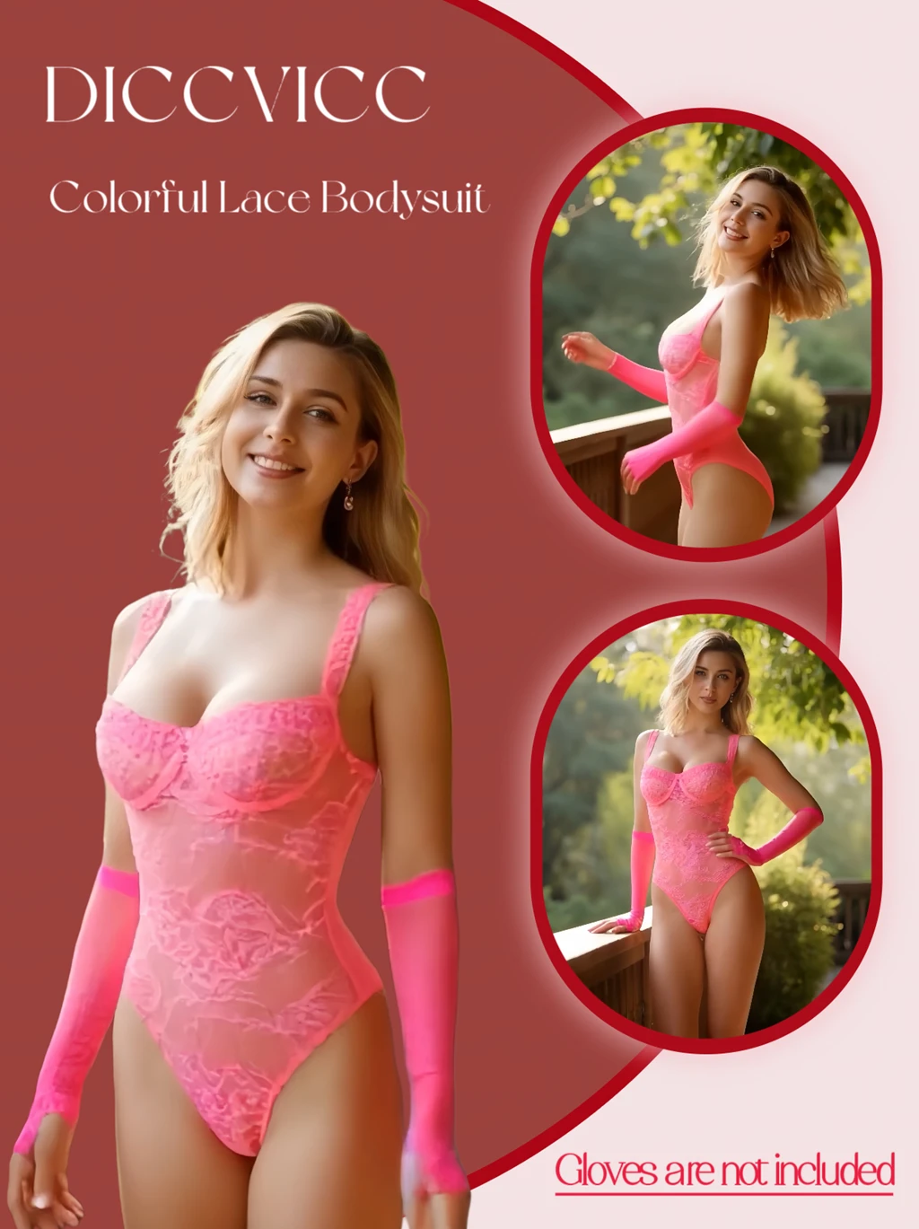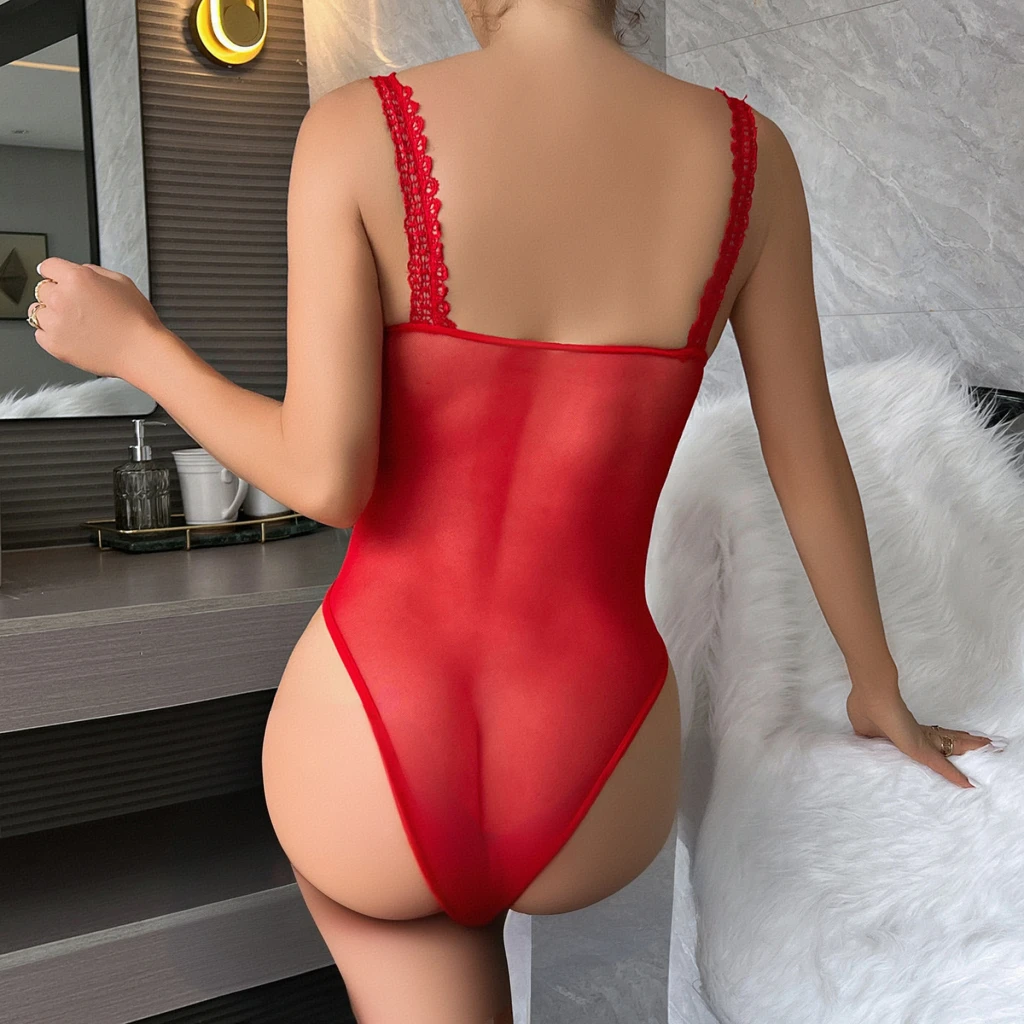 Highlight your curves in this sheer one-piece lace bodysuit, adorned with floral embroidery for a sexy and elegant lingerie look