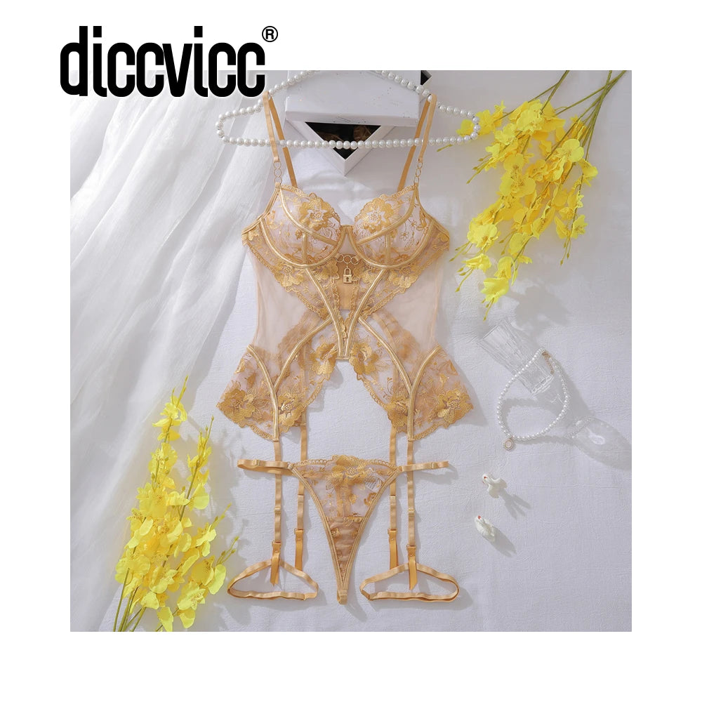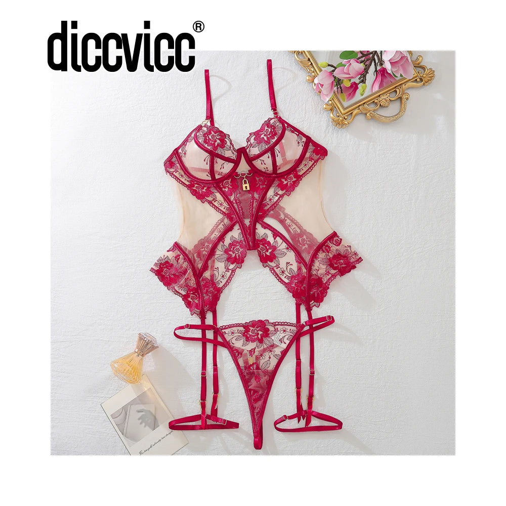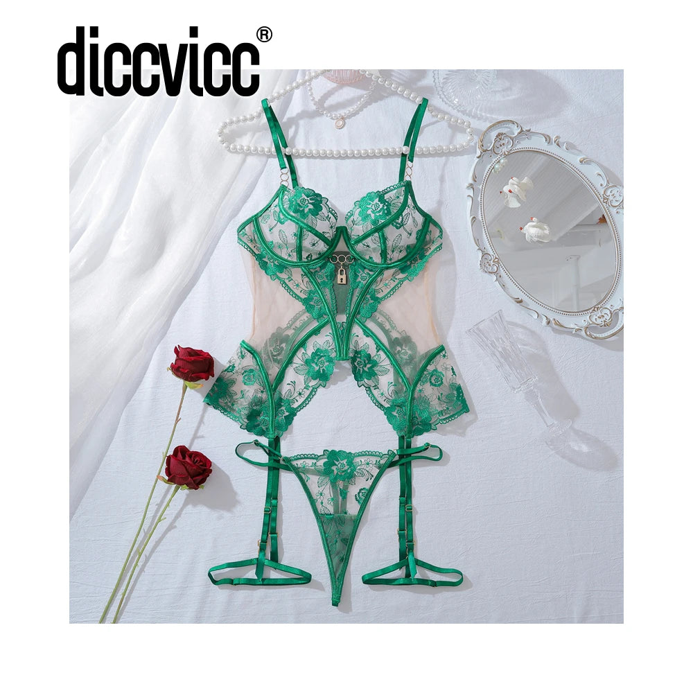 Embrace elegance and allure with this ultra-thin, see-through lace bra set, featuring delicate floral embroidery for a seductive, vintage-inspired look.
