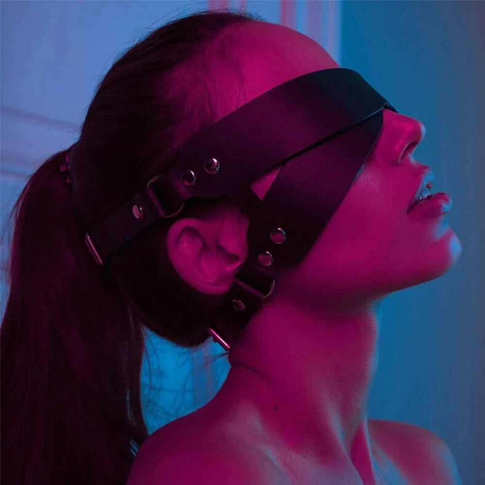 Embrace mystery and kink with this sexy leather blindfold mask, perfect for BDSM play, cosplay, or adding a seductive touch to parties and masquerades.