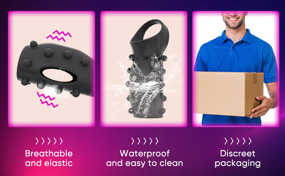 3 wearing styles (head, shaft, base) offer all-round stimulation, from the glans to the testicles for men, and from the vaginal opening to the G spot for women. Stimulate each inch you can imagine.