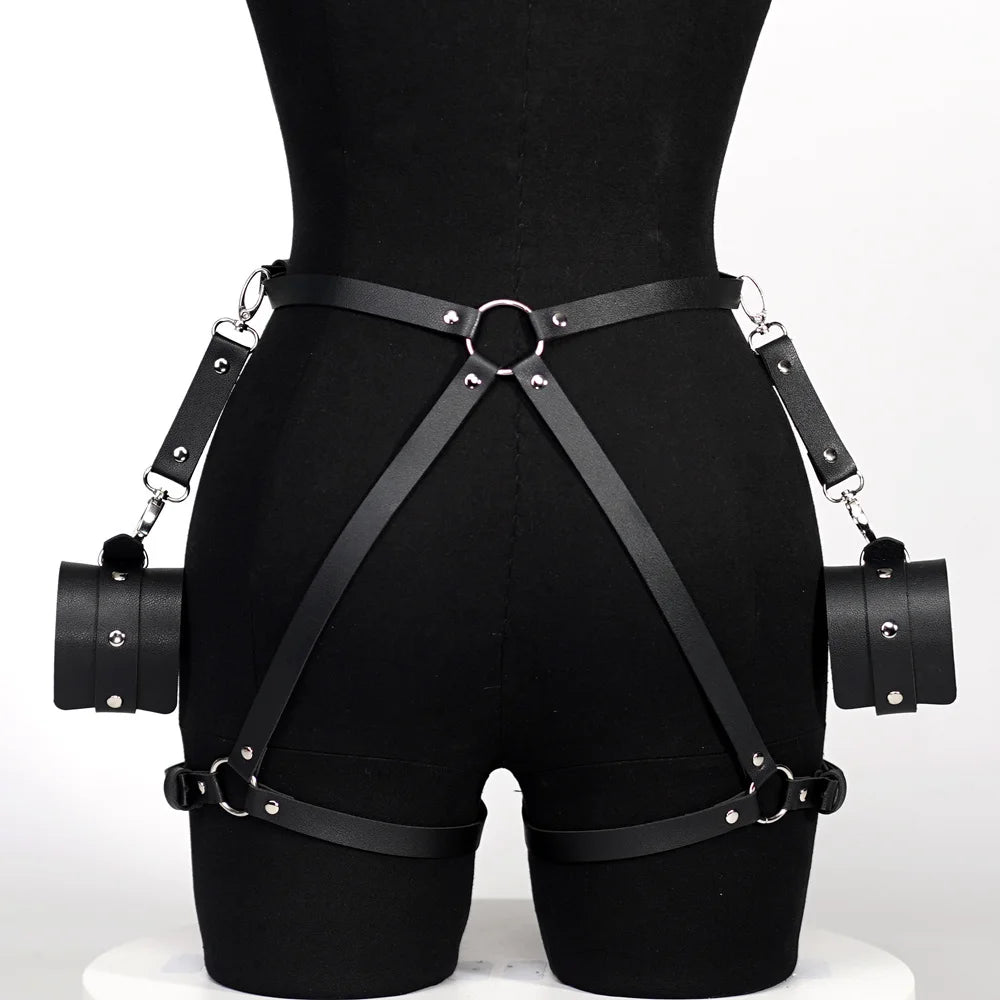 Turn heads with this sexy leather thigh harness and garter, perfect for BDSM play, gothic fashion, and festival or rave outfits